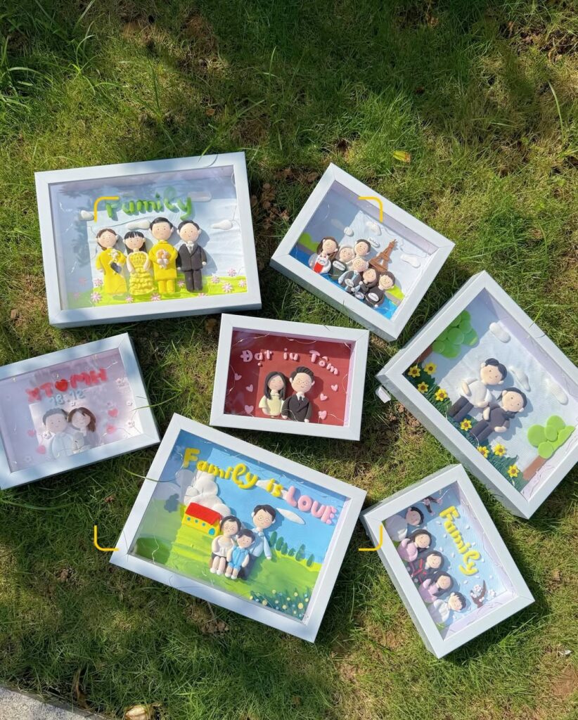 Khác với các loại khung sản xuất hàng loạt, khung handmade chứa tình cảm của người làm. Mỗi chi tiết được sắp đặt thủ công: màu nơ, ánh đèn, tấm thiệp nhỏ… Từng thứ được đặt vào không phải để đẹp, mà để đúng với người nhận.